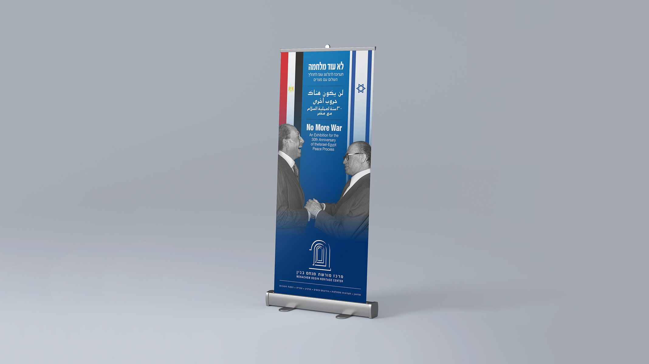 מרכז מורשת מנחם בגין הקים תערוכה לציון שלושים שנה להסכם השלום עם מצרים. לבקשתם עוצב שלט ״רול-אפ״ ושלטי חוצות שנתלו ברחבי ירושלים. בעיצוב נעשה שימוש בחומר ארכיוני שהיה ברשות מרכז בגין. התמונה שנבחרה, מטרתה היתה לשדר אופטימיות ותקווה להמשך.